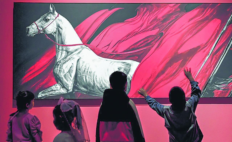 “和美共生——第三届中国新疆国际艺术双年展”在新疆美术馆开展,吸引众多市民前来参观(2023年2月18日摄)。石榴云/新疆日报记者 汤永摄